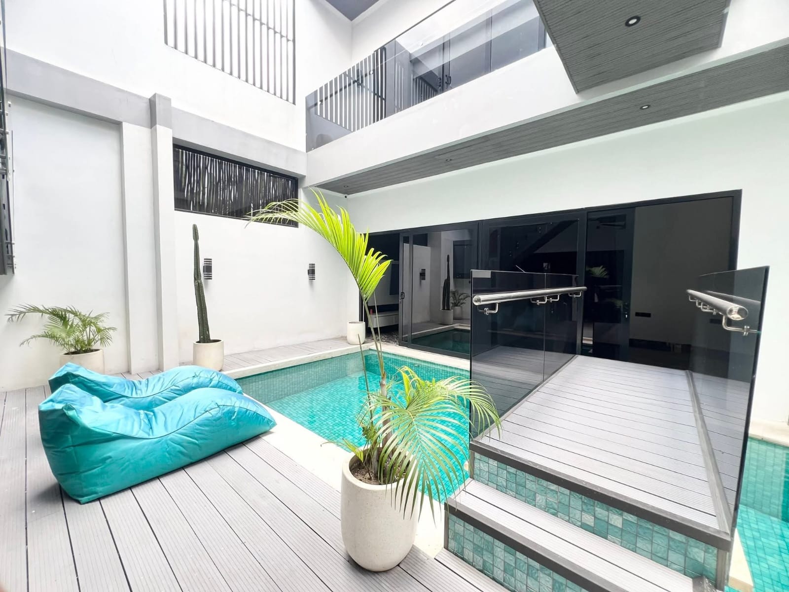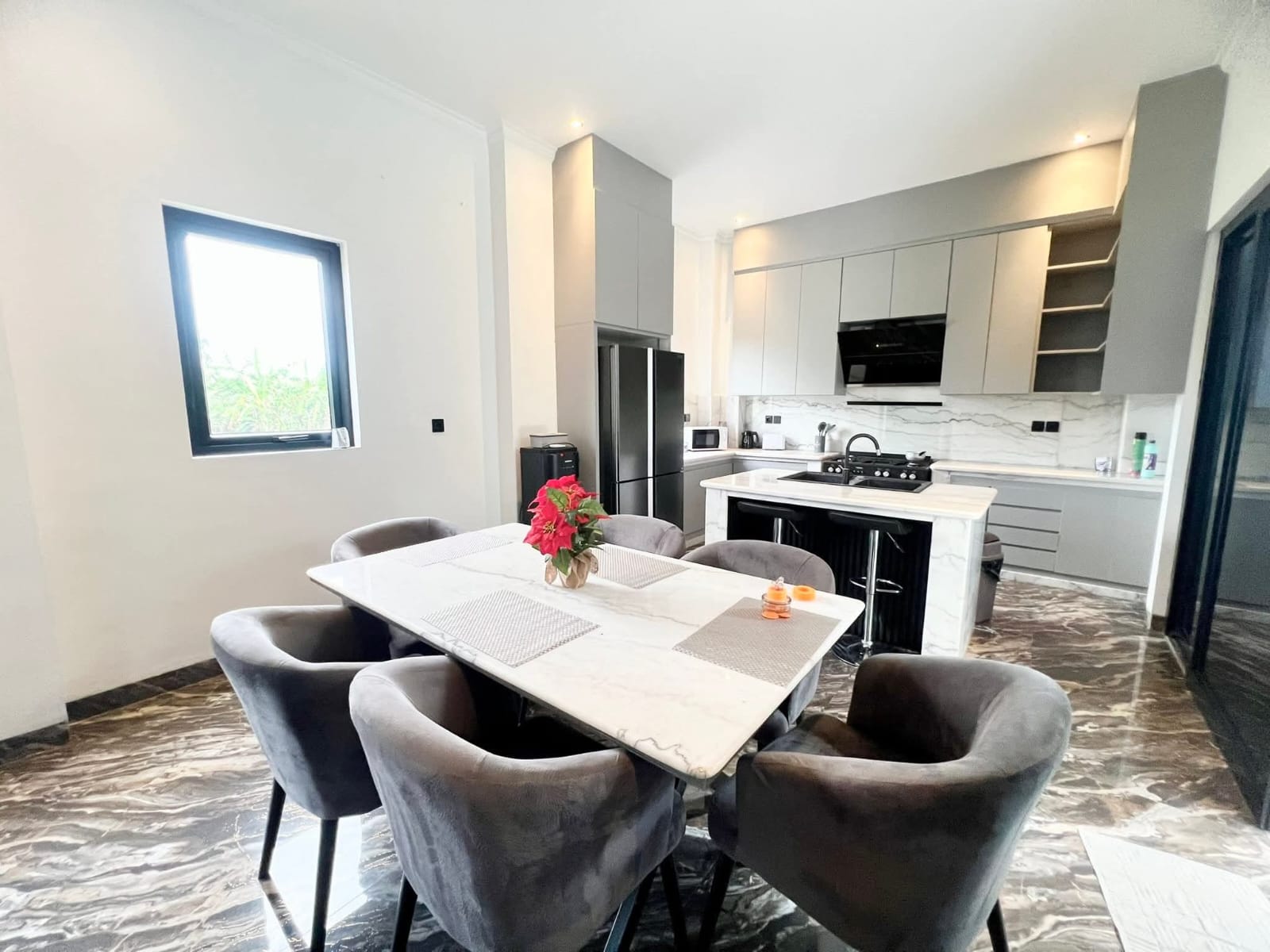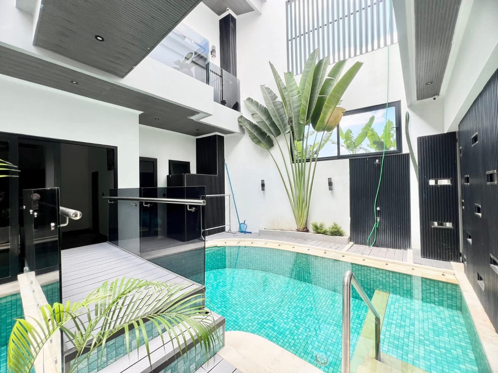 Spanning 1.8 Are of freehold land (SHM title) with a generous 260 m² building footprint, the villa features 3 spacious bedrooms 🛏️ and 3 modern en-suite bathrooms 🚿. Inside, discover an enclosed living area, fully equipped kitchen 🍳, and a convenient guest toilet adjacent to the living room—all fully furnished for seamless move-in comfort 🛋️. Practical upgrades include a dedicated laundry room with a washing machine 🧺, private carport with remote security gate 🚗🔒, high-speed WiFi, and CCTV surveillance for peace of mind 📡📹. Outdoor highlights include a refreshing 3.5m x 9m private pool 💦, while essential utilities feature a robust 11,000 kWh electricity supply ⚡. With no nearby construction and SLF/PBG documentation in progress 📜, this villa promises quiet, hassle-free living.