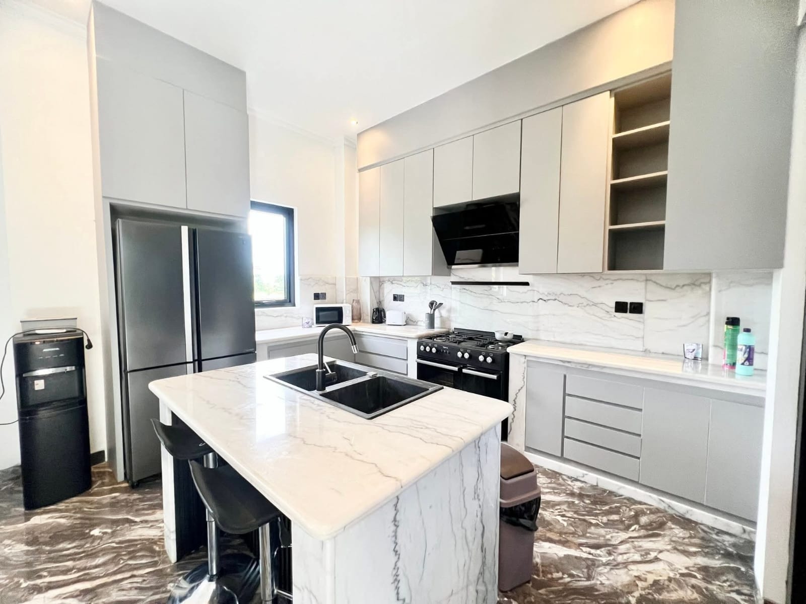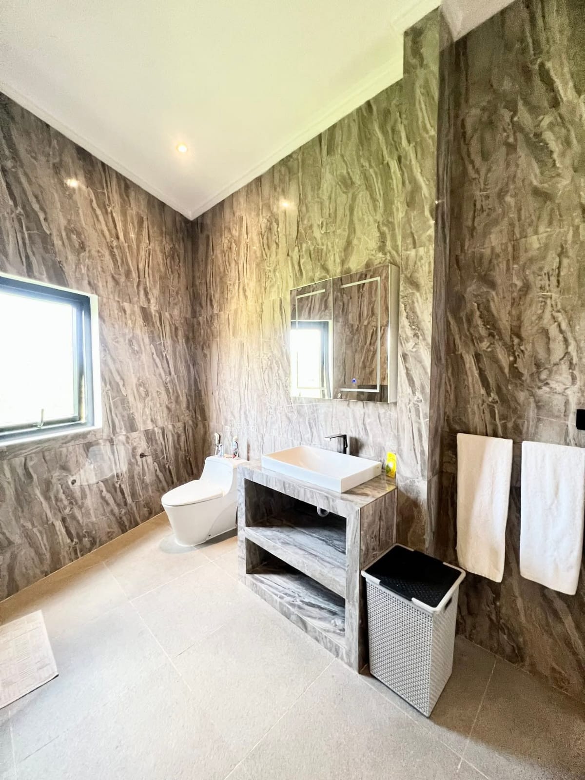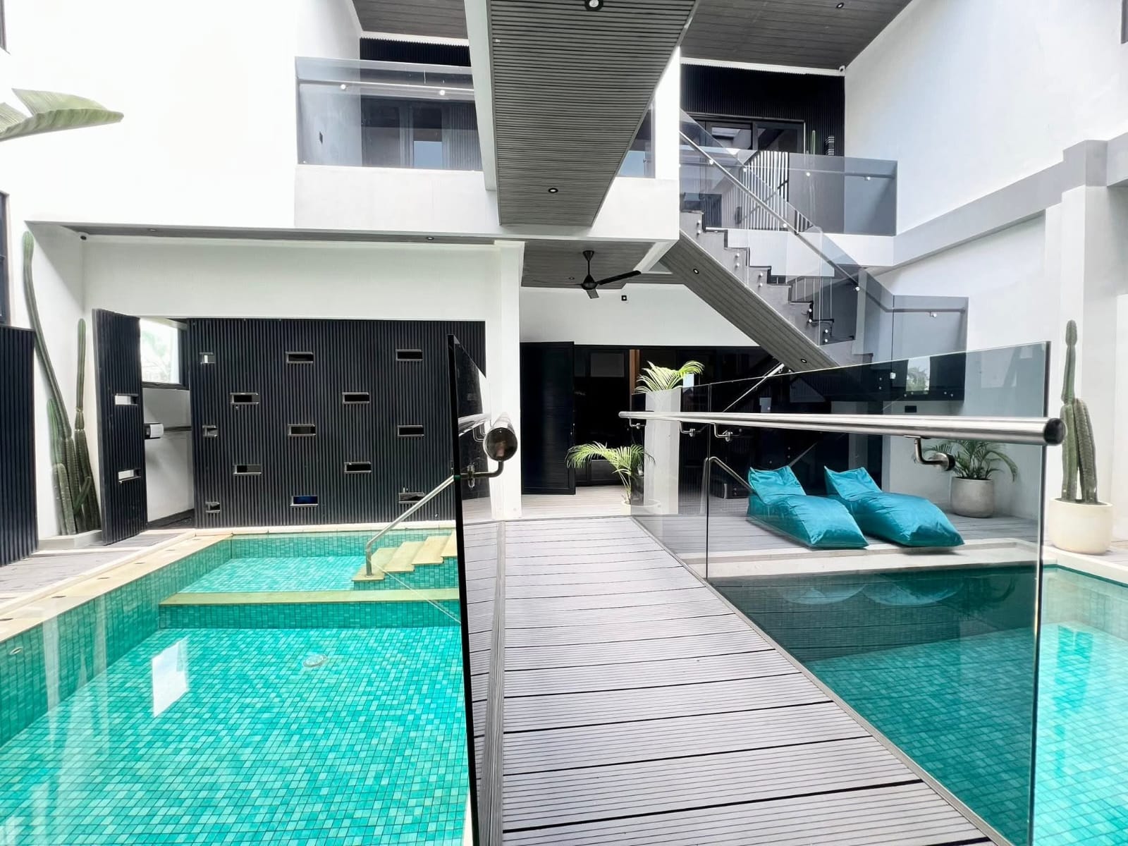 Spanning 1.8 Are of freehold land (SHM title) with a generous 260 m² building footprint, the villa features 3 spacious bedrooms 🛏️ and 3 modern en-suite bathrooms 🚿. Inside, discover an enclosed living area, fully equipped kitchen 🍳, and a convenient guest toilet adjacent to the living room—all fully furnished for seamless move-in comfort 🛋️. Practical upgrades include a dedicated laundry room with a washing machine 🧺, private carport with remote security gate 🚗🔒, high-speed WiFi, and CCTV surveillance for peace of mind 📡📹. Outdoor highlights include a refreshing 3.5m x 9m private pool 💦, while essential utilities feature a robust 11,000 kWh electricity supply ⚡. With no nearby construction and SLF/PBG documentation in progress 📜, this villa promises quiet, hassle-free living.