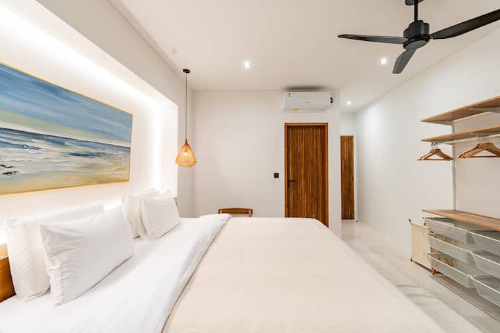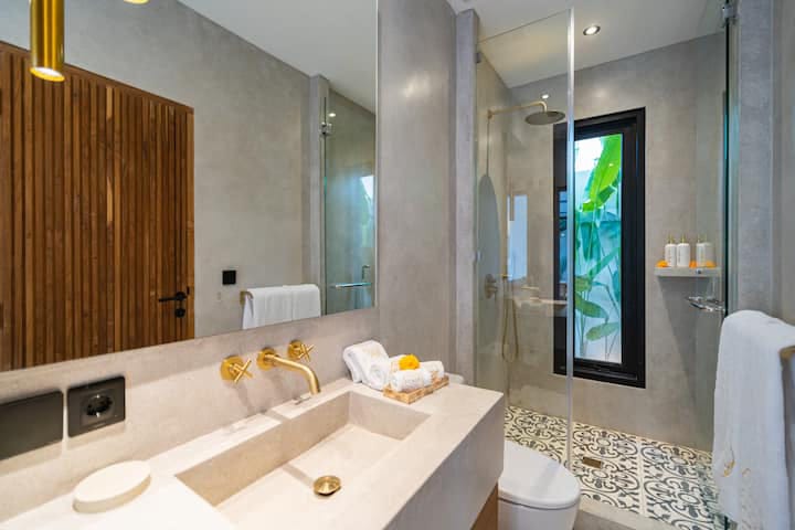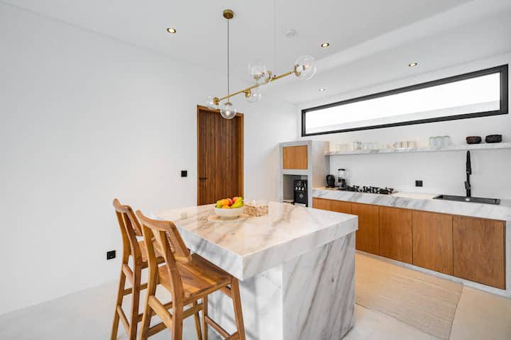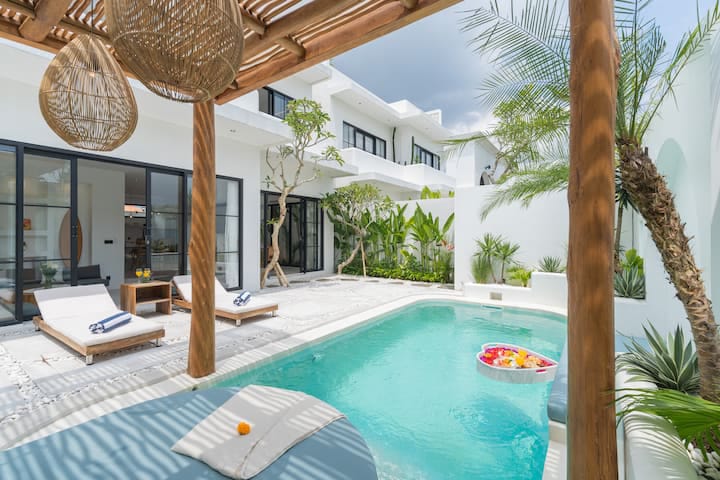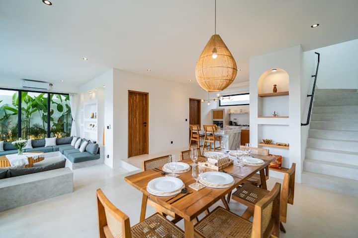 Welcome to Villa Al—a stunning 3BR retreat in tranquil Seseh, just a 5–10 minute walk from the beach 🏖️! Unwind in your private pool 💦, soak in ocean & rice field views from the rooftop 🌅, or cook in two well-equipped kitchens 🍳. Blending elegance with nature, this modern villa is perfect for families 👨👩👧, couples 👫, and digital nomads 💻—secluded yet close to Canggu’s vibrant hotspots!