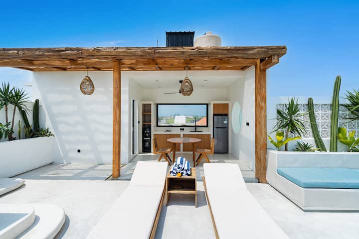 – Rooftop Infinity Pool & Kitchenette: Oasis with breathtaking ocean/rice field views 🌊🌾—ideal for yoga 🧘, sunrise coffee ☕, or sunset cocktails 🥂.