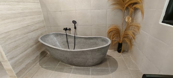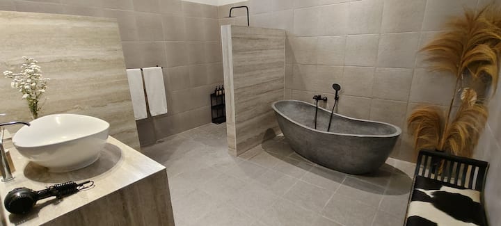 – 3 bathrooms 🧴: Bathtub, outdoor shower, hair dryer, premium toiletries, hot water, bidet