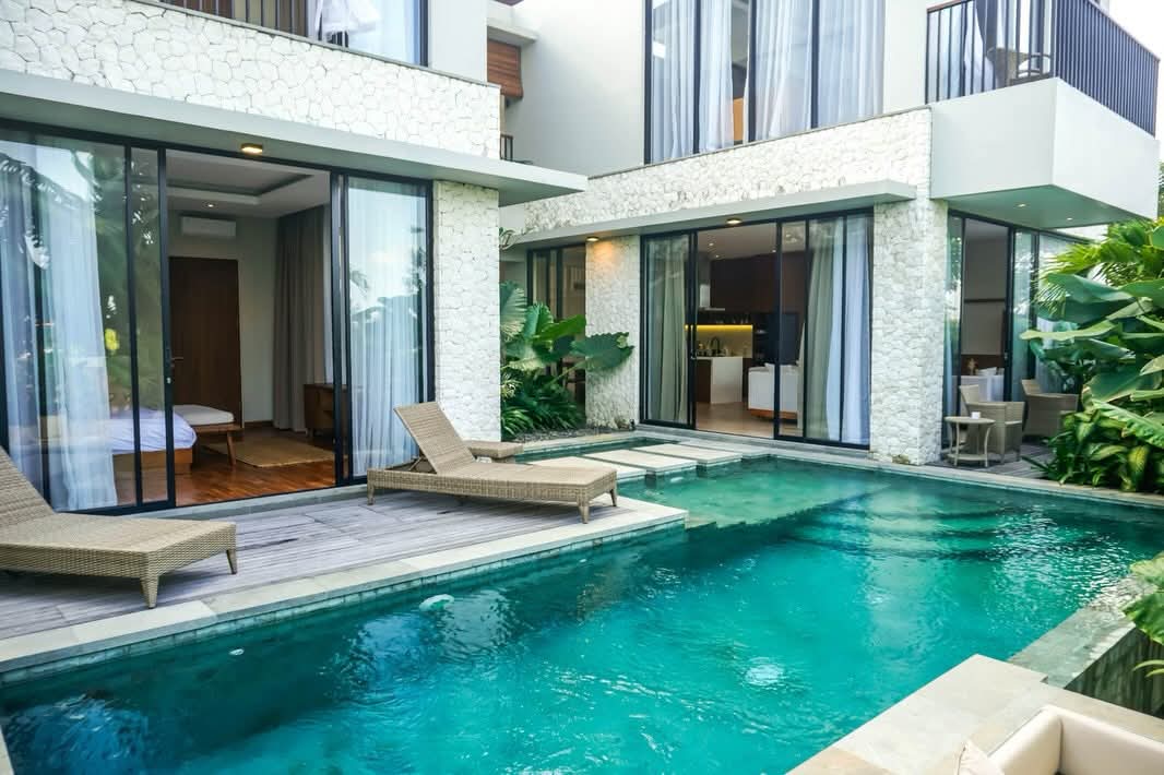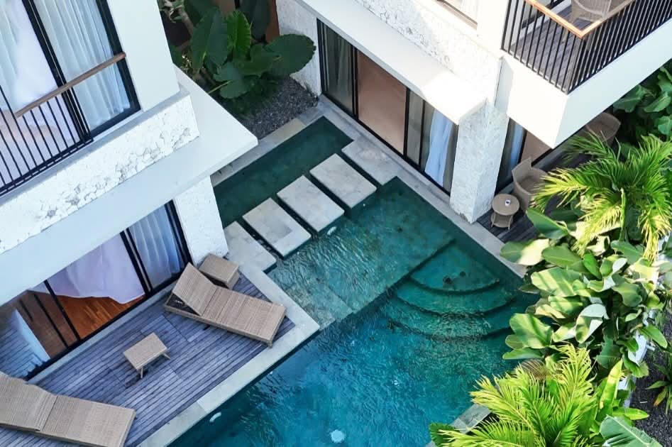 β’ Comfortable sun loungers are positioned around the pool, offering the perfect spot to soak up the Bali sunshine, read a book, or take a nap
