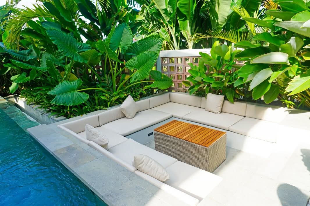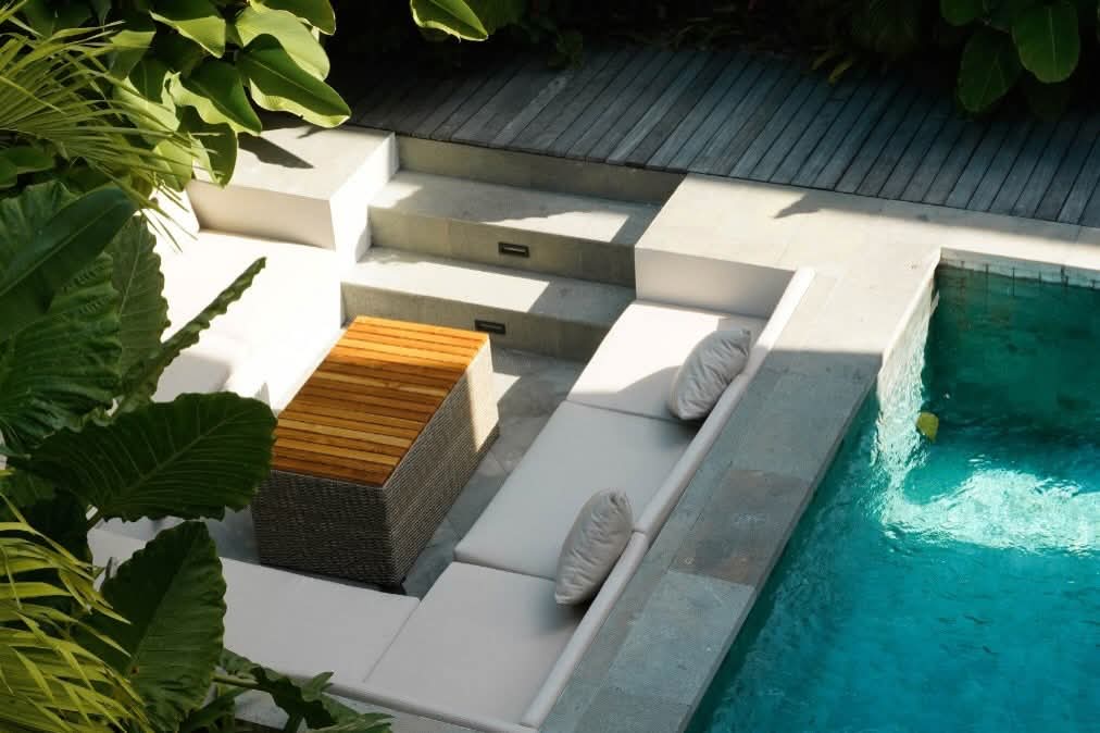 β’ The stylish, rectangular pool is designed with clean lines that match the villaβs modern aesthetic, surrounded by smooth stone tiling that stays cool underfoot even in the midday sun