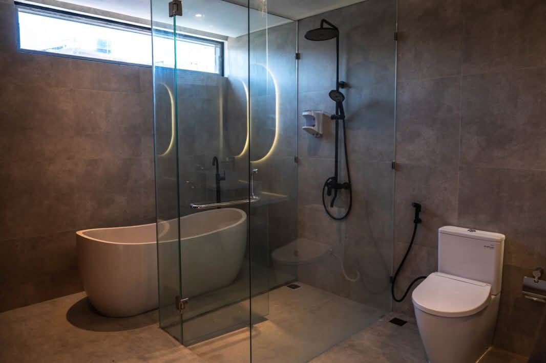 β’ The main bedrooms feature deep, freestanding bathtubs β perfect for unwinding with a soak at the end of the day, while enjoying the tranquil atmosphere of the villa