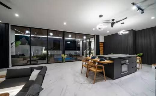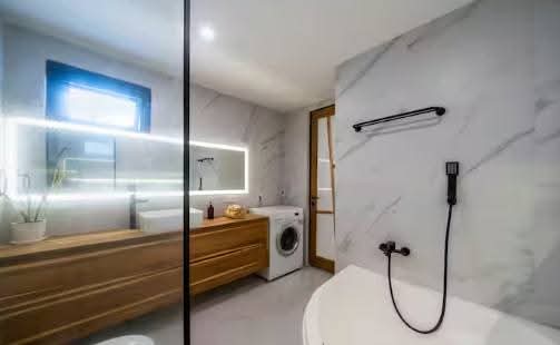 – Modern Amenities: Equipped with 6 smart TVs (Netflix, YouTube), a sunken living room, a jacuzzi, a BBQ, an oven, 2 bathtubs, 2 washing machines, a modern kitchen, and 100Mbps Wi-Fi.