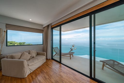 The villa boasts a private kitchen connected to a charming dining area, perfect for enjoying delicious meals with loved ones. The semi-open living area seamlessly flows into the inviting pool area, where you can bask in the sun and soak up the mesmerizing ocean views.