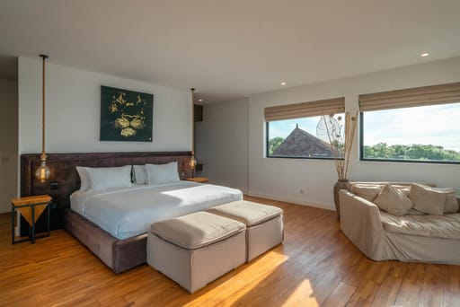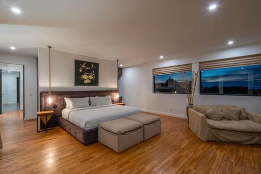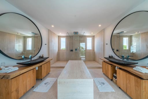 Welcome to your luxurious haven! Villa N features five beautifully appointed bedrooms, including two upstairs bedrooms with en-suite bathrooms, ensuring a tranquil and comfortable stay.
