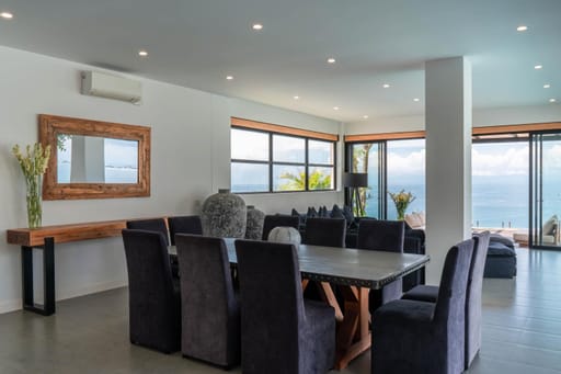 The spacious 10 x 5-meter swimming pool is surrounded by lush greenery, creating a serene oasis overlooking the azure waters of the Indian Ocean. Relax on the patio with its captivating ocean views, the ideal spot for savoring a morning coffee or an evening cocktail.