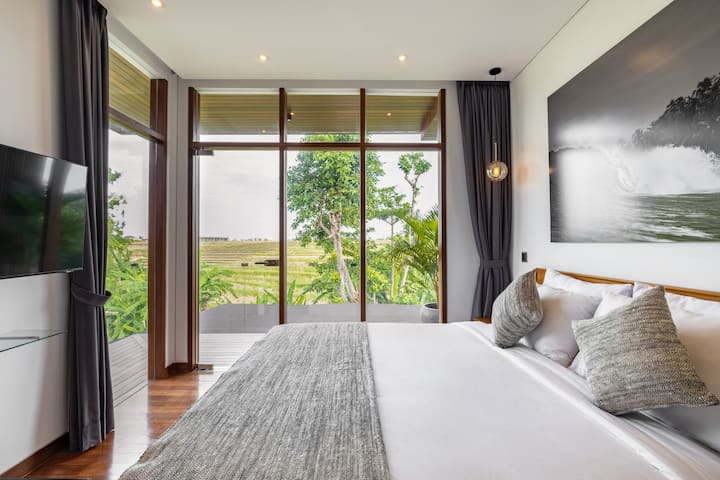 – Pemandangan Indah: Bangunlah dan saksikan panorama hamparan sawah hijau, menyuguhkan latar belakang tenteram untuk liburan Anda di pulau.