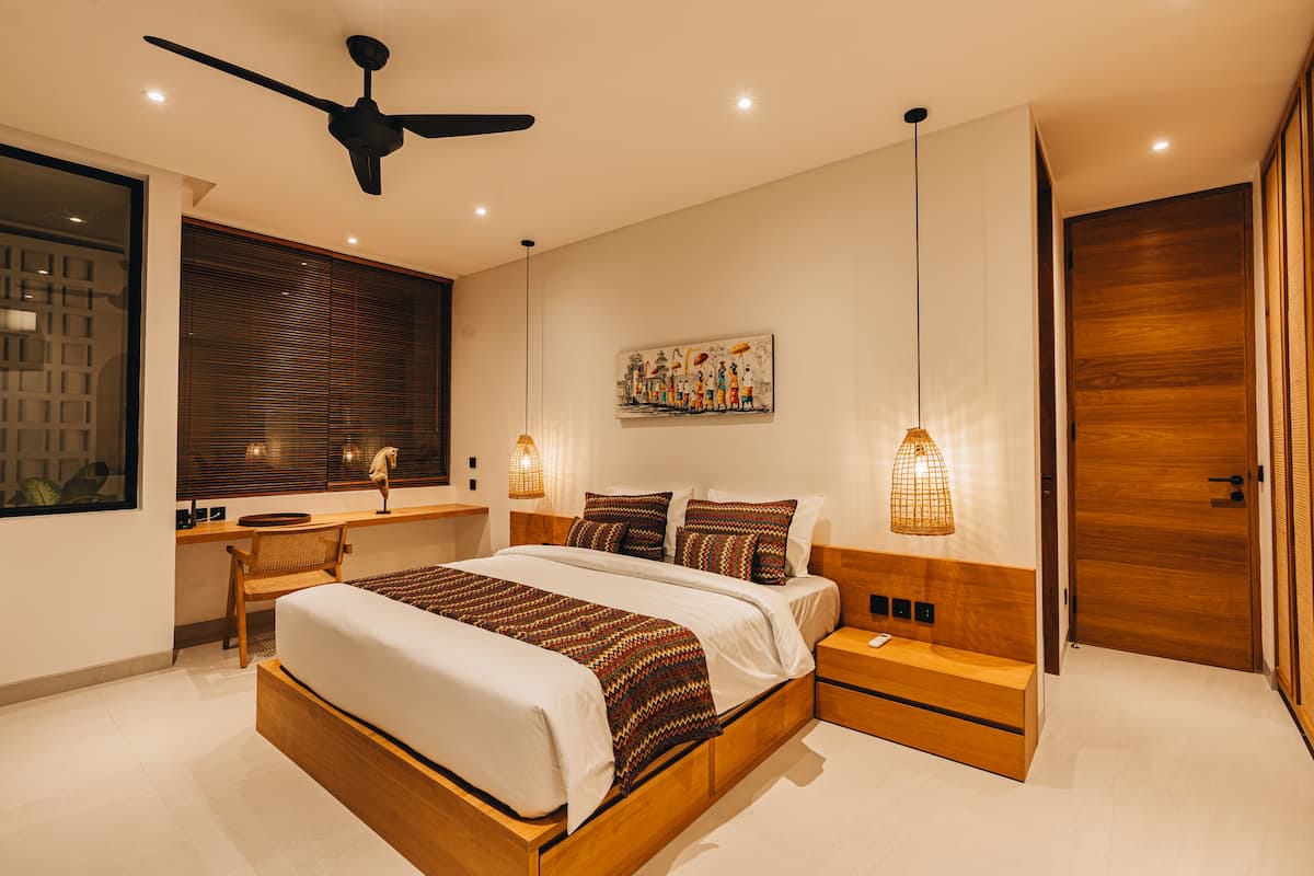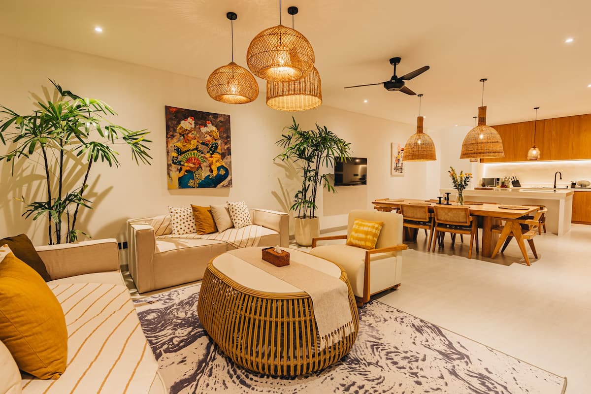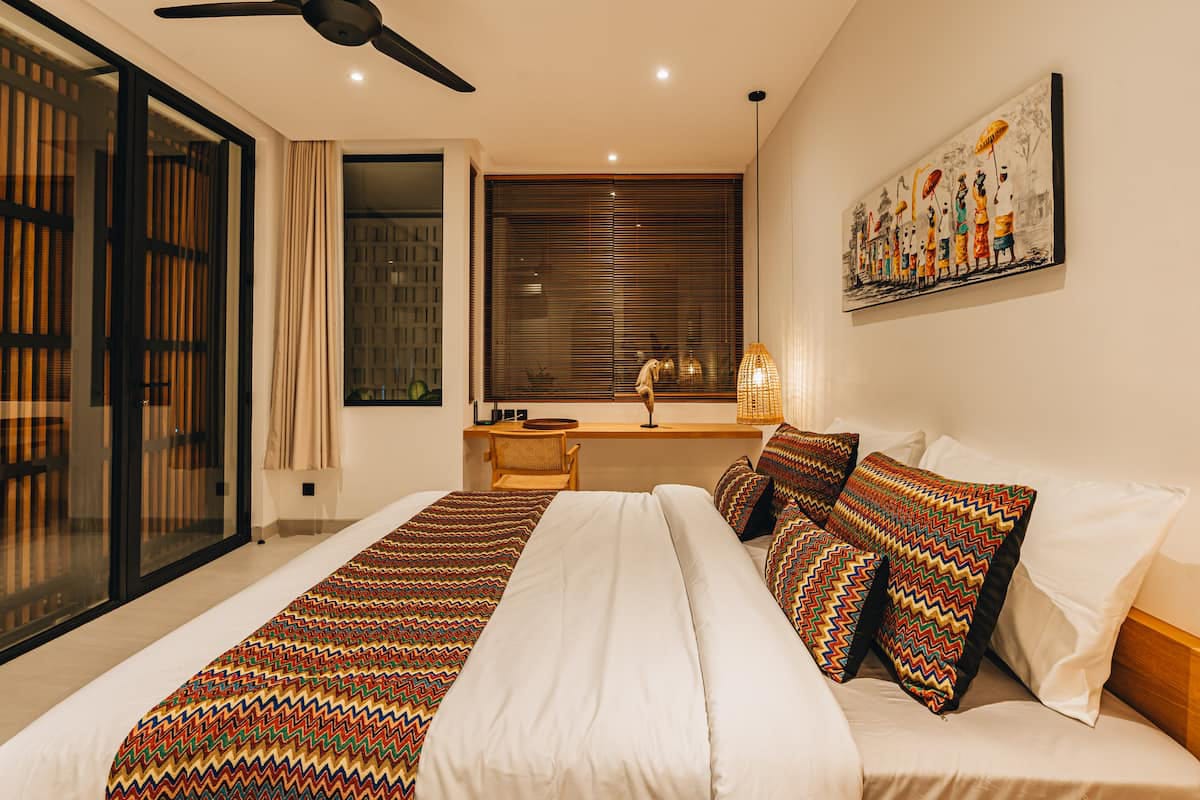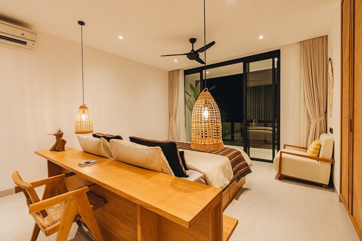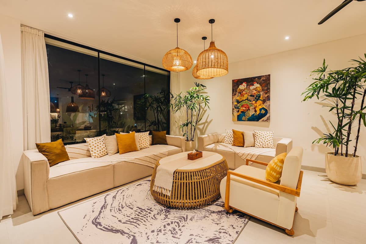 – Indoor Areas: Step into a welcoming living room ideal for unwinding after exploring Canggu. The fully-equipped kitchen is perfect for preparing meals with local ingredients.