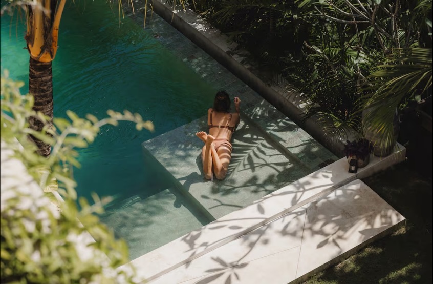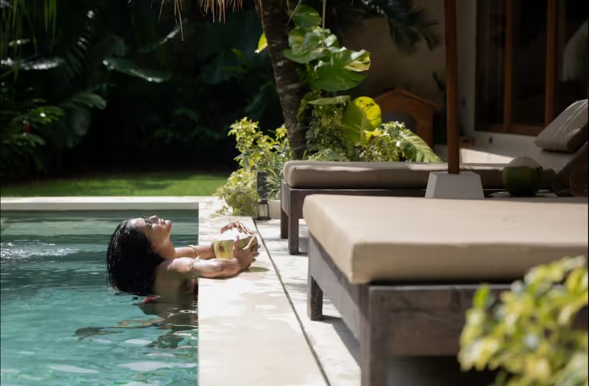 – Outdoors: 6m x 3m private pool, tropical garden, outdoor shower, and shaded terrace
