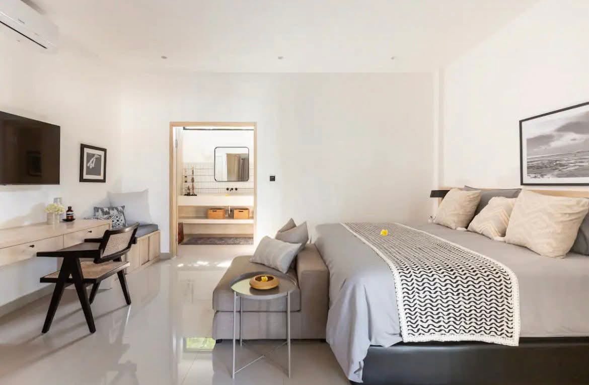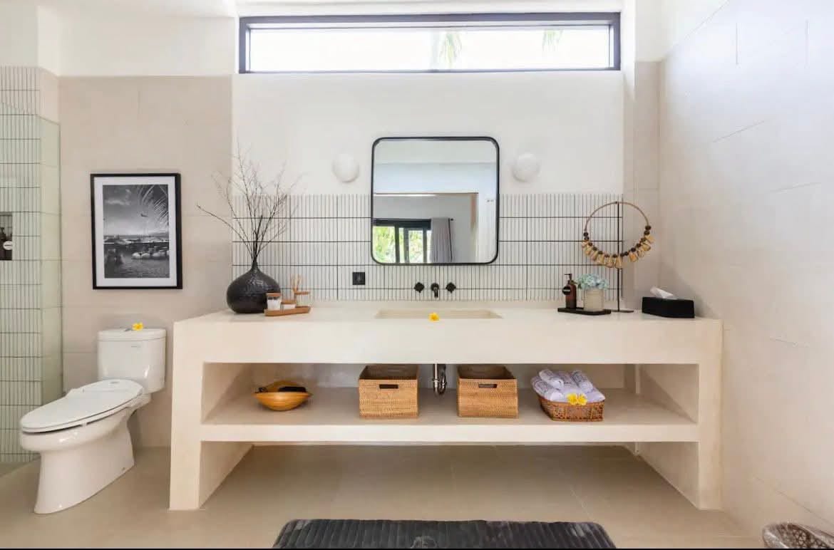 This beautifully designed modern villa offers the perfect blend of luxury and convenience, with 3 spacious bedrooms available for long-term rental. Strategically situated on Jalan Padang Linjong – one of Canggu’s most sought-after locations – it is just a short stroll from renowned local spots, including the popular Copenhagen eatery and Samadi Yoga Studio. Whether you’re relocating to Bali for work or seeking a comfortable home base for an extended stay, this villa provides an exceptional living experience in a prime neighborhood.